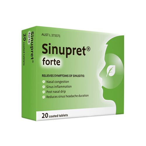 SinupretÀ® forte relieves symptoms of sinusitis such as nasal congestion, inflammation, post-nasal drip and reduces the duration of sinus headaches. The anti-bacterial and anti-viral properties of the unique herbal formula inhibit the growth of sinus-related bacteria, reducing the risk of subsequent bacterial infections from sinusitis.