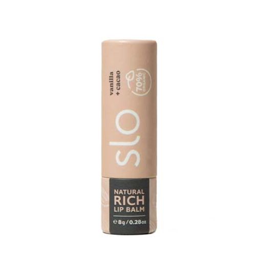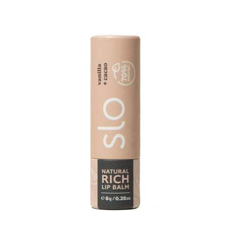 Slo Naturals natural lip balms are free from parabens, phthalates, petrolatum and SLS - and are at least 70% organic.