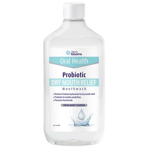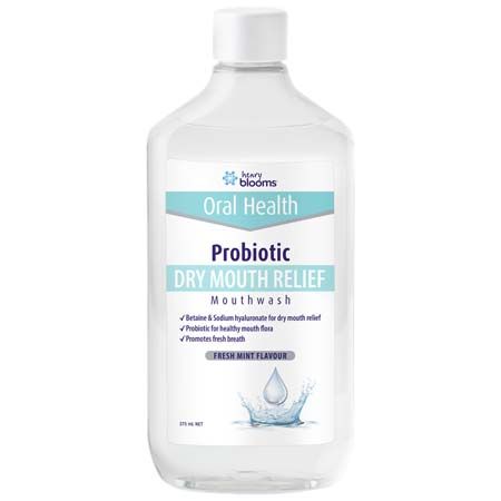 Henry Blooms Probiotic Mouthwash Dry Mouth Relief is formulated with Betaine and Sodium Hyaluronate to moisturize and soothe mouth dryness. It harnesses the benefits of Dental-lac* probiotic protection to balance healthy mouth flora and maintain a delicate pH in the mouth.