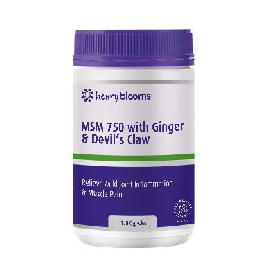 Henry Blooms MSM 750 with Ginger & Devil's Claw is formulated with MSM, Harpagophytum procumbens (Devil's Claw) root extract and Zingiber officinale (Ginger) root extract to help: