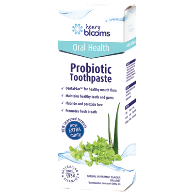 Bring the power of probiotic protection to your mouth with Henry Blooms Probiotic Toothpaste, formulated to effectively clean the teeth and gums and freshen the mouth and breath, with an energising natural Peppermint flavour that will leave your mouth with a minty-fresh feeling you'll love.