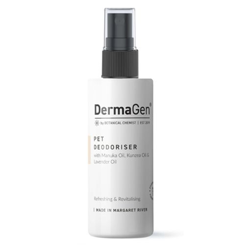DermaGen Pet Deodoriser should be applied evenly over your pet's coat or hair in between bath times and on rainy days to balance odours or after bathing to prolong the clean, fresh smell. This carefully selected blend of essential oils imparts a natural scent while helping to calm and soothe your pet.