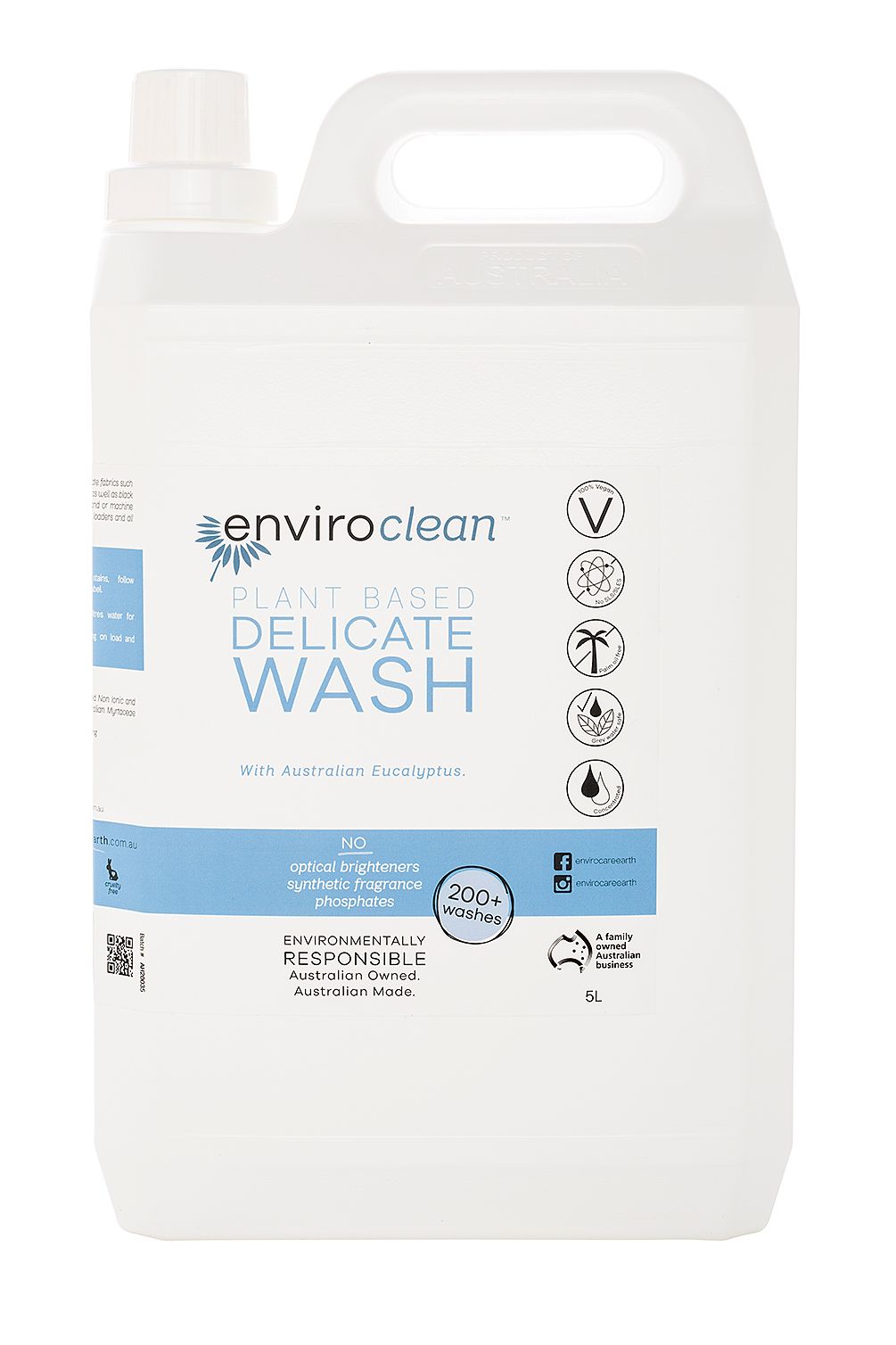 Cleans and protects delicate fabrics such as silk, linen, wool & lace as well as black garments. Suitable for hand or machine washing in Front and Top Loaders, all water temperatures. Australian Eucalyptus fresh.
