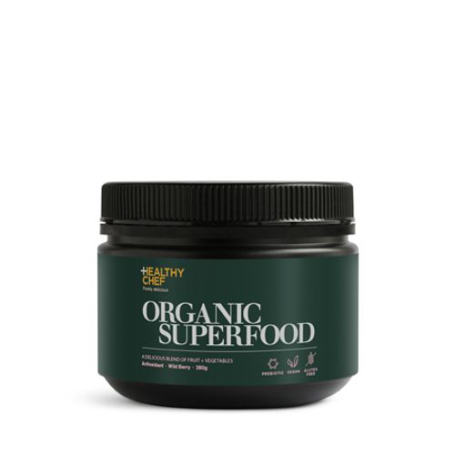 BLEND IT: Add 1 tablespoon of Organic Superfood to your choice of milk with frozen berries, banana, and Healthy Chef Protein for a delicious and nutritious smoothie.