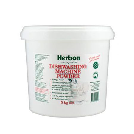 Herbon Dishwashing Machine Powder 5kg can get you better results from your dishwasher without chlorine bleaches. Entirely safe and biodegradable, no harmful residue left. Leaves dishes sparkling clean and the ozone layer does not suffer either.