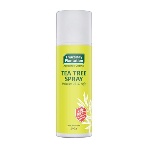 Tea Tree oil is a natural antiseptic for minor cuts and abrasions and relieves the symptoms of insect bites and stings. Spray the affected area holding the can 15 cm from the skin.