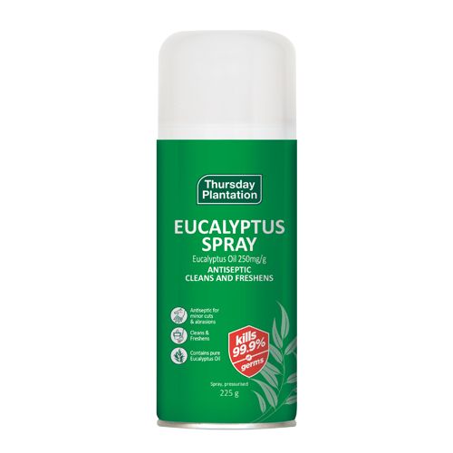 Thursday Plantation À¢¯Eucalyptus Spray captures the natural antiseptic power of Eucalyptus Oil in a convenient and ready to use format.À¢¯ Made with pure Eucalyptus essential oil, Thursday Plantation Eucalyptus Spray kills 99.9% of germs and can be used for a variety of uses including: