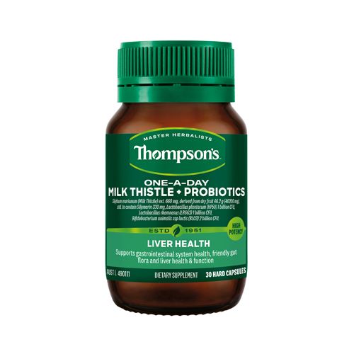 Thompson's One-A-Day Milk Thistle + Probiotics brings together the best of both the herbal and nutritional options to help support liver and gastrointestinal health. This One-A-Day product contains Milk Thistle, a herb used to: