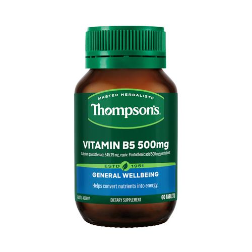 Thompson's Vitamin B5 500mg is formulated with 500 mg of Pantothenic Acid which supports/helps:
