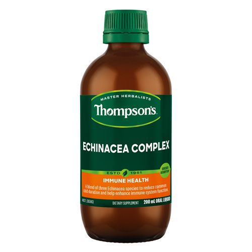 Thompsonâs Echinacea Complex is formulated with a blend of three Echinacea species. A liquid format to help provide quicker* absorption and is ideal for those that struggle ingesting tablets/capsules. It is used to: