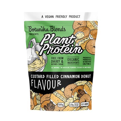 Botanika Blends Custard Filled Cinnamon Donut Plant Protein is for those who love the taste of a fresh, warm bakery donut with hints of cinnamon and custard to get the senses going wild!