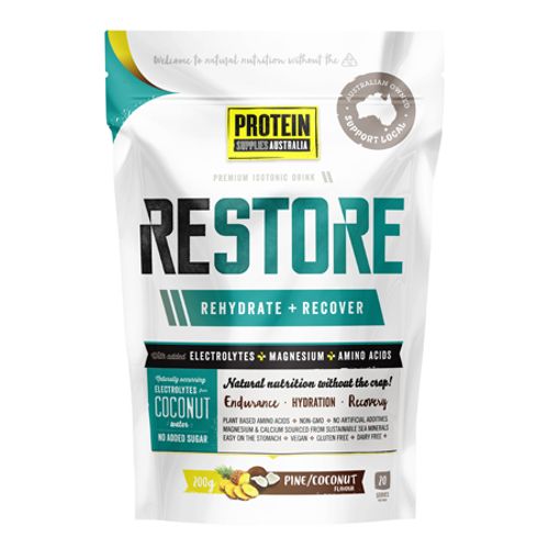 Flavoured with a refreshing burst of pineapple and coconut, Restore is naturally sweetened with coconut water, delivering a delicious and clean hydration. If you like pia coladas and gettin' caught in the rain, this one is for you!