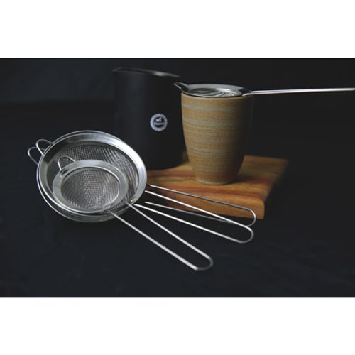 Classic style tea strainer with a fine mesh stainless steel gauze and long twin wire handle.