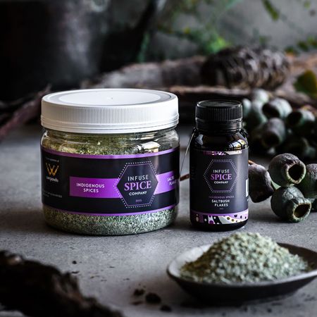 These 3m high grey-blue shrubs are found throughout Australia. Dried Native Saltbush flakes are a delightful complement to many a dish. They have a salty, herbal flavour, and are very versatile. Rich in protein, antioxidants and minerals.