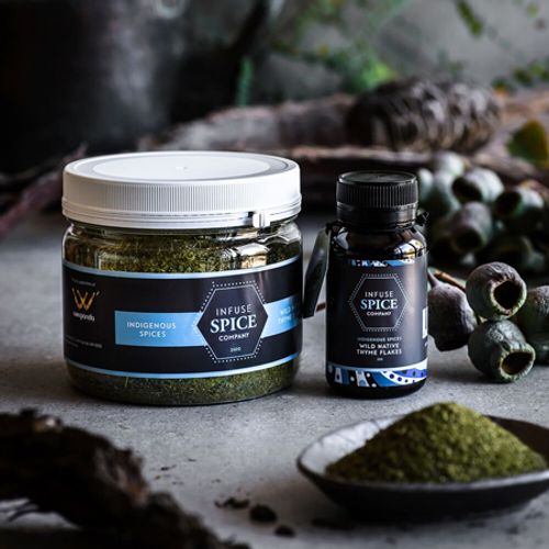 Grown by Indigenous communities in the Northern Territory, this plant was originally used for medicinal & ceremonial purposes. Early European settlers called it the 'the Five-Spice plant' due to its fragrant mix of flavours, predominantly Basil, Sage and Mint.