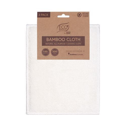 Introducing the Eco Basics Bamboo Cloth (3 Pack): A Sustainable, Reusable, and Highly Absorbent Cleaning Essential. The ultimate eco-friendly solution for your cleaning needs. Made from 100% plant-based materials, specifically bamboo fiber, these cloths are not only highly absorbent but also renewable, anti-bacterial, and resistant to odors and stains. Embrace sustainable cleaning practices with these biodegradable and reusable cloths.