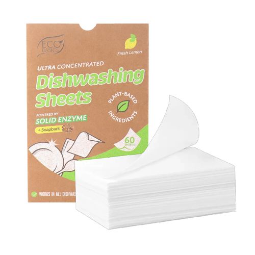 Change the way you wash your dishes with Eco Basics Ultra Concentrated Dishwashing Sheets. Powered by plant-based solid enzyme technology, each ultra-thin sheet delivers advanced cleaning that breaks down grease, food residue, and bacteriaÀwithout the need for harsh chemicals or bulky plastic bottles.