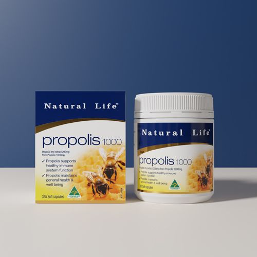 Natural Life Australia's Propolis 1000mg Capsules are mid-strength propolis capsules, offering enhanced immune & antioxidant support by delivering a more potent dose of bioactive compounds for the following benefits: