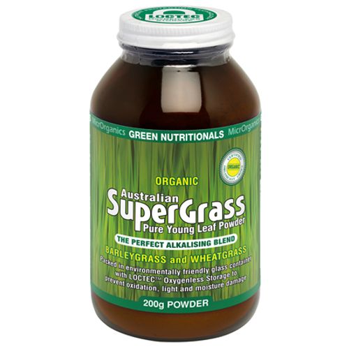 Australian Organic SUPERGRASS is a combination of organic young leaf Barleygrass and organic young leaf Wheatgrass. These two young leaf grasses deliver a broad spectrum of organic nutrients in one perfect blend to energise, alkalise and nourish the body.