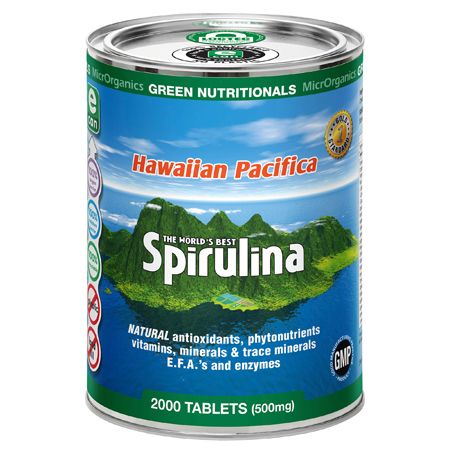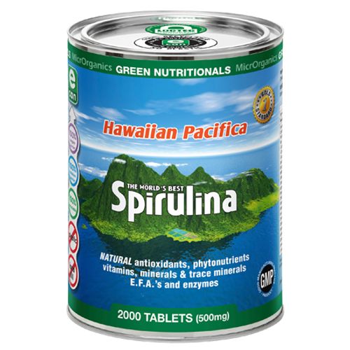 Hawaiian Pacifica Spirulina contains around sixty percent complete, highly digestible protein and contains every essential amino acid. It also contains more beta-carotene than any other whole food. It is the best whole food source of gamma linolenic acid (GLA). It is rich in B vitamins, minerals, trace elements, chlorophyll, and enzymes.