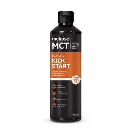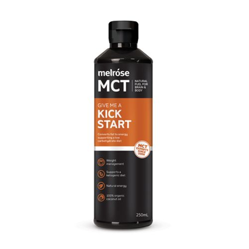 Our Kick Start MCT contains C8 and C10 medium chain triglycerides (MCTs), that are 100% derived from coconuts. Caprylic Acid (C8) is known to increase energy, boost ketone production, and assist in weight-loss. Capric Acid (C10) has similar actions to C8, though as it is a slightly longer chain, taking longer for the body to process it, sustaining the energy increase.