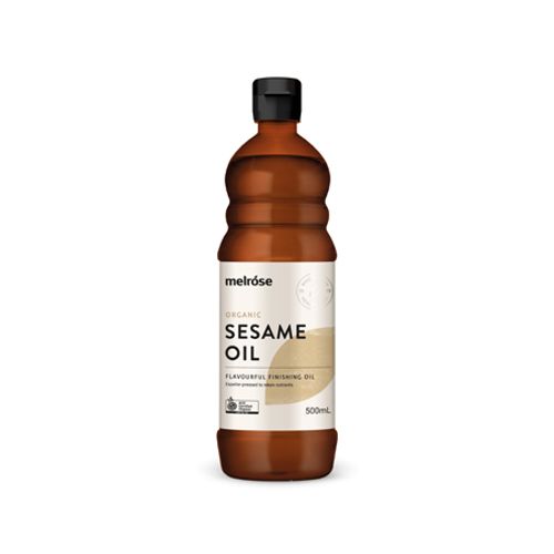 Melrose Organic Sesame Oil is pressed from raw sesame seeds giving it a lighter mild sesame flavour adding a subtle nuttiness to dishes (unlike dark sesame oil that is pressed after toasting the seeds and has a more intense sesame flavor).