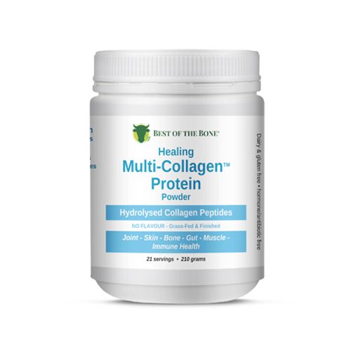 5 grams per day of hydrolyzed collagen will help support overall health. However, 10-20 grams per day of Best of the Bone collagen powder - will address inflammatory issues such as joint pain and gut health-related issues. You will notice radiant, more elastic skin quickly.