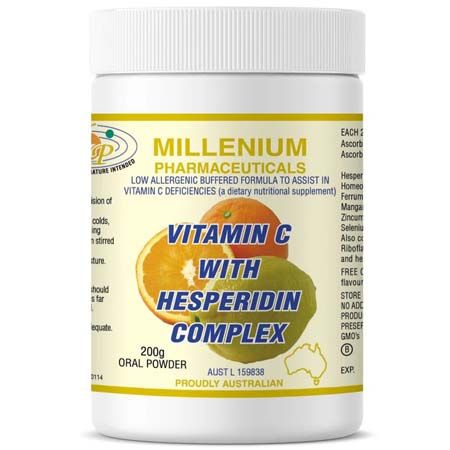 Vitamin C cannot by synthesised in the human body. Millenium Vitamin C with Hesperidin Complex provides 1000mg of buffered Vitamin C specially formulated to have a refreshing taste and sound absorption and acceptance in the body.