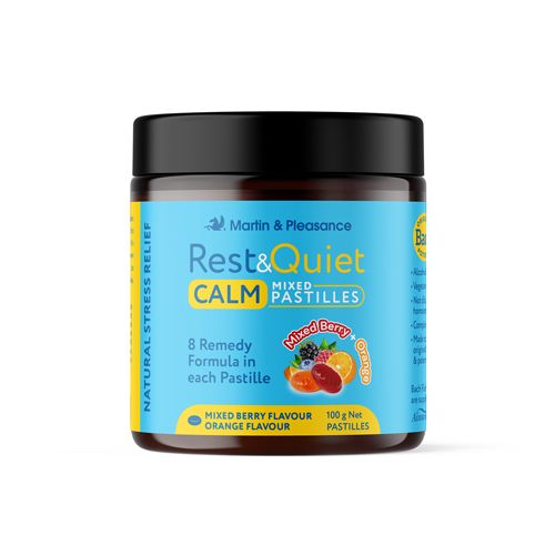 Rest&Quiet Stress Pastilles contains 4 drops of the Stress formula in each pastille. Made with Dr BachÂs original formulation (Cherry Plum, Clematis, Impatiens, Rock Rose & Star of Bethlehem) with an additional 3 remedies (Aspen, Mimulus & White Chestnut) to give the emotional support to overcome our daily stressors that we now face in our ever-changing world.