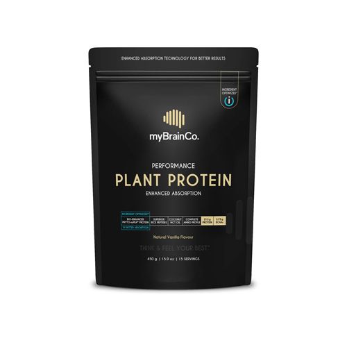myBrainCo's groundbreaking Performance Plant Protein formula combines bio-enhanced ioPEA (Ingredient Optimized Pea Protein) with superior rice peptides, nutrient-rich faba bean protein, and coconut MCT oil powder for unparalleled absorption and exceptional results. Utilising a patented process, ioPEA modifies the protein structure for improved bioavailability, increasing amino acid absorption by 300% compared to regular pea protein. Rice peptides further enhance this formula by providing easily digestible, high-quality proteins that work synergistically with ioPEA to deliver a complete amino acid profile, including BCAAs, EAAs, and leucine, with absorption comparable to whey protein. Additionally, the high dose of pure coconut MCTs (C8 & C10) enhances mental sharpness and provides sustained, ketone-based energy throughout the day.