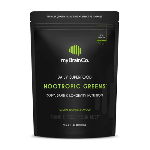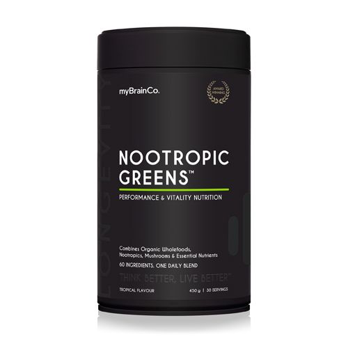 Nootropic Greens is a powerful daily nutritional blend that supports energy levels, immune function, cognition, and longevity. MyBrainCo's unique formula combines certified organic, nutrient-dense whole foods with top-tier nootropics and industry-leading longevity ingredients conveniently packed into a single daily serving.