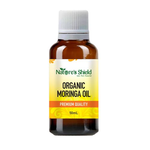 Natures Shield Cold-Pressed USDA certified organic Moringa seed Oil is a superfine oil with a fresh green aroma. This nutrient rich oil can be used on its own for skin and cosmetic needs or blended with other ingredients for speciality beauty treatments .