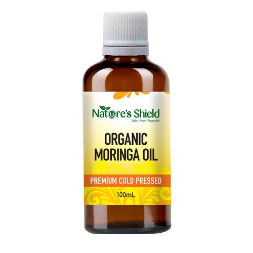Natures Shield Cold-Pressed USDA certified organic Moringa seed Oil is a superfine oil with a fresh green aroma. This nutrient rich oil can be used on its own for skin and cosmetic needs or blended with other ingredients for speciality beauty treatments .