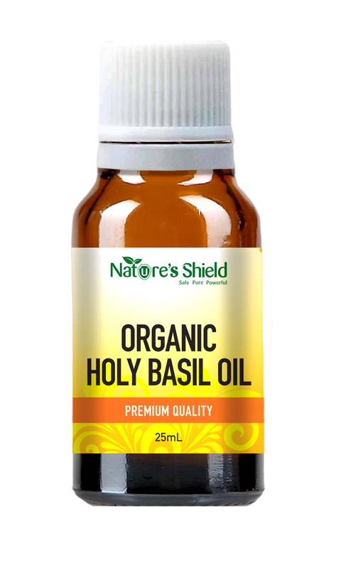 Holy Basil is quite different to the basil used in Mediterranean cooking. In Hinduism it is regarded as sacred and is used in various spiritual rituals. Its fragrance is a combination of liquorice and clove, giving it a spicy, sweet, refreshing aroma.Nature s Shield Holy Basil oil is certified organic and sustainable and is steam distilled extracted, stored in air-tight amber glass containers preserving its naturally derived qualities.