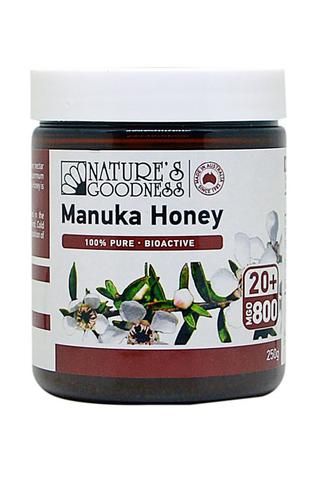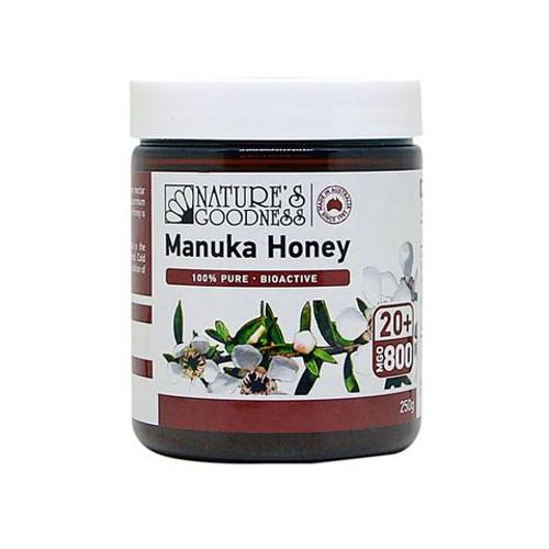Nature's Goodness Manuka honey has a Methylglyoxal (MGO) content of 800 milligrams.