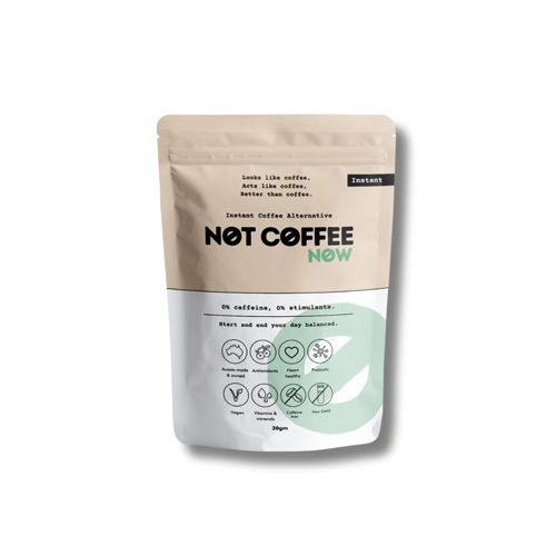 Not Coffee Now is an INSTANT caffeine and stimulant-free coffee alternative designed specifically for coffee lovers who need or want to eliminate caffeine due to health reasons or lifestyle choices. Expertly crafted to replicate your coffee ritual, it looks, brews, and tastes as close to real coffee as possible - minus the acidity and unwanted side effects.