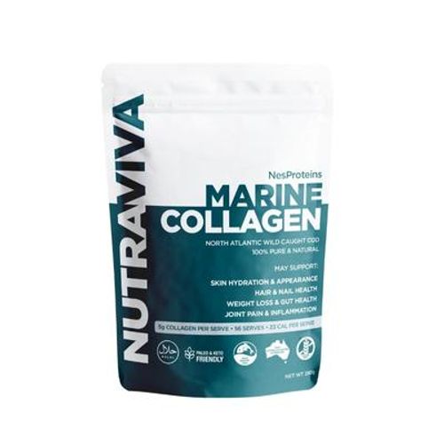 Nutraviva Marine Collagen powder has a very low molecular weight and is optimised to stimulate collagen metabolism and increase the production of collagen synthesis, making it ideal for beauty improvements such as firmer, smoother looking skin with few lines, stronger nail growth and healthier hair.