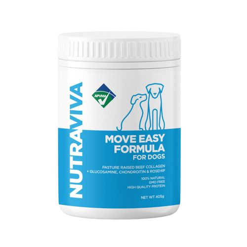 Nutraviva Move Easy Formula for Dogs is an APVMA approved complimentary food supplement suitable for all dog breeds and sizes and is designed to be taken daily as long term use may help improve joint health and functioning.