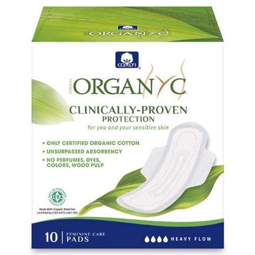 Feel the softness of pure 100% organic cotton next to your skin with Organyc ultra thin heavy flow pads. Hypoallergenic organic cotton sanitary pads with an adhesive strip and protective wings keeps the Organyc organic cotton sanitary pad firmly in place.