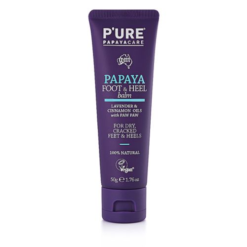 P'ure Papayacare's vegan and cruelty-free foot and heel balm help moisturise dry, cracked or rough skin. Made from 100% natural ingredients such as Papaya, Shea Butter, Lavender Oil and Cinnamon Oil to nourish damaged skin. The essential oils are known for their anti-fungal properties.