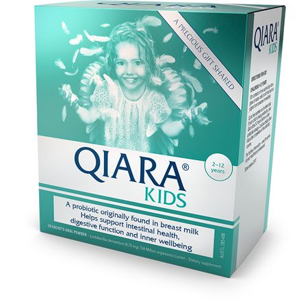 Qiara Kids contains a probiotic strain isolated from human breastmilk to support gastrointestinal health. It is suitable for all kids from pre-school through to 12 years of age.