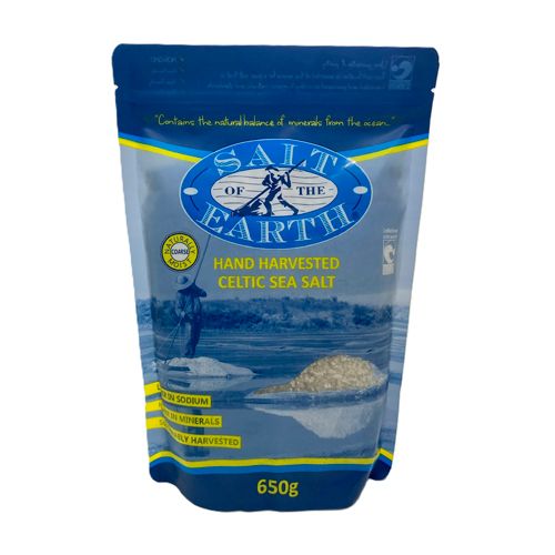 The original SALT of the EARTH Coarse Celtic Sea Salt is 100% natural and Chemical free. Harvested by hand in France as it has been done for over 1,000 years. Fully mineralised moist sea salt is of the highest potency containing minerals and natural trace elements essential to the body’s daily needs. The good salt breaks down the complex carbohydrates of grains and vegetables for better digestion. Fully mineralised natural salt does not create thirst and assists in hydration.