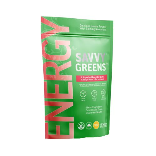 SAVVY Greens+ Energy is made by nutritionists and health experts, using carefully selected ingredients bursting with benefits for lasting energy.