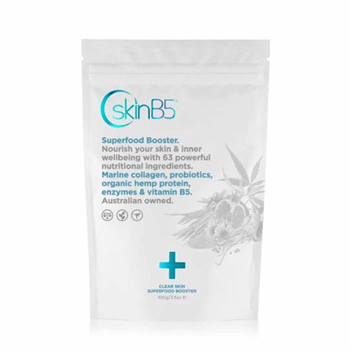 Nourish your skin & inner wellbeing with 63 powerful nutritional ingredients. Featuring marine source bioactive collagen peptides VERISOL®, prebiotics, probiotics, organic hemp protein, enzymes & vitamin B5. Our innovative food-based approach to skin wellness uses a combination of 63 specially selected super ingredients to supply your body with key vitamins, minerals, essential fatty acids, amino acids, digestive enzymes, probiotics & prebiotics. SkinB5's unique superfood booster also features the benefits of Marine Collagen (bioactive collagen peptides VERISOL®), Australian Organic Hemp Protein, Organic Zinc (Orgen-Zn®), Maca, Probiotics Lactobacillus & Bifidobacterium, Prebiotics, Vitamins A, B5, C, D & E, Omega-3, -6 & -9, Silica, Ashwagandha, Alkalising Greens & High Antioxidant Superfruits.