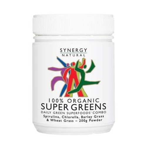 Synergy Super Greens is a synergistic blend of Nature's most nutrient dense green superfoods, Spirulina, Chlorella, Barley Grass and Wheat Grass.