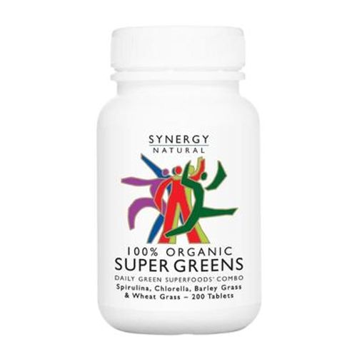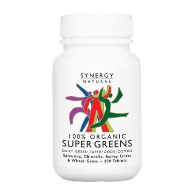 Synergy Super Greens is a synergistic blend of Nature's most nutrient dense green superfoods, Spirulina, Chlorella, Barley Grass and Wheat Grass.