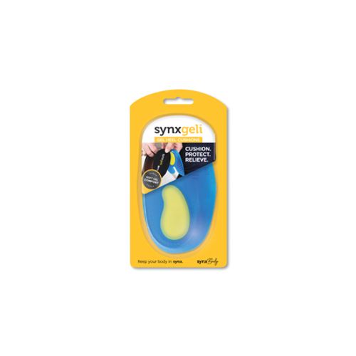 The Synxgeli Gel Heel Cushions can cushion, protect and relieve the heel and Achilles by providing optimal shock absorption as the heel strikes the ground.