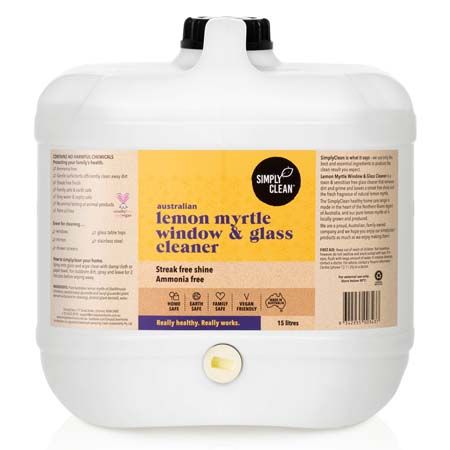 15 Litre Bulk version of our Lemon Myrtle Window & Glass Cleaner. It tackles grime, dust, grease and fingerprints, leaving glass surfaces shiny and streak-free. The beautiful fragrance of pure Australian lemon myrtle essential oil leaves your home smelling fresh. This size will refill your 500ml spray bottle 30 times!