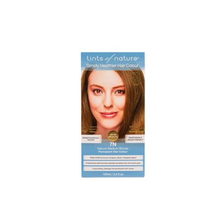Rediscover happier, healthier hair with Tints of Nature 7N Natural Medium Blonde patented permanent hair dye for a naturally shiny warm blonde.