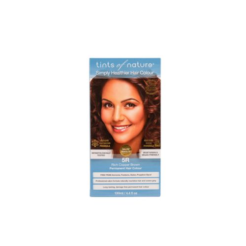 Rediscover happier, healthier hair with Tints of Nature 5R Rich Copper Brown patented permanent hair dye for a rich brunette and copper blend for a natural colour with a healthy shine.